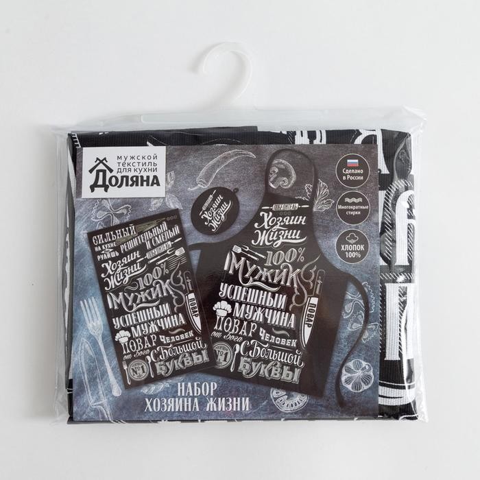 Кухонный набор (3 предмета) «100% Мужик», фартук 70×60 см, прихватка 20×20 см, полотенце35х60см