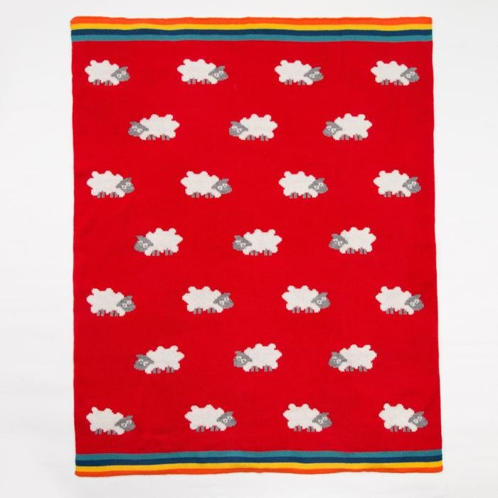 Плед вязаный Крошка Я «Овечки» цв. красный, 80*100 см, 100% хлопок