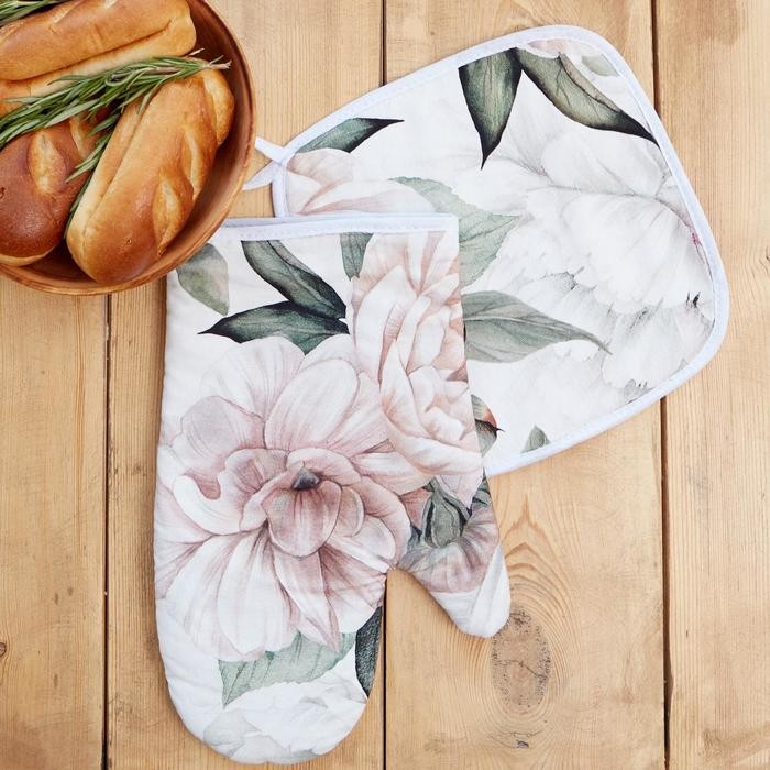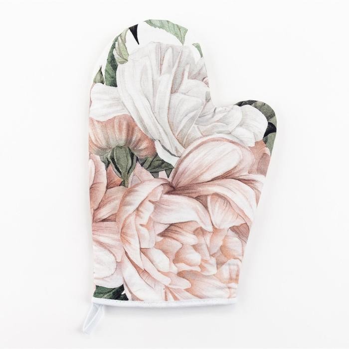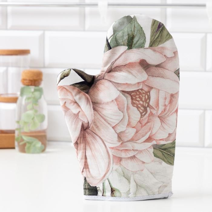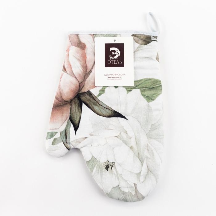 Варежка-прихватка «Этель» Пионы 20х27см,100% х/л, ватин 250г/м2 (двухстороняя)