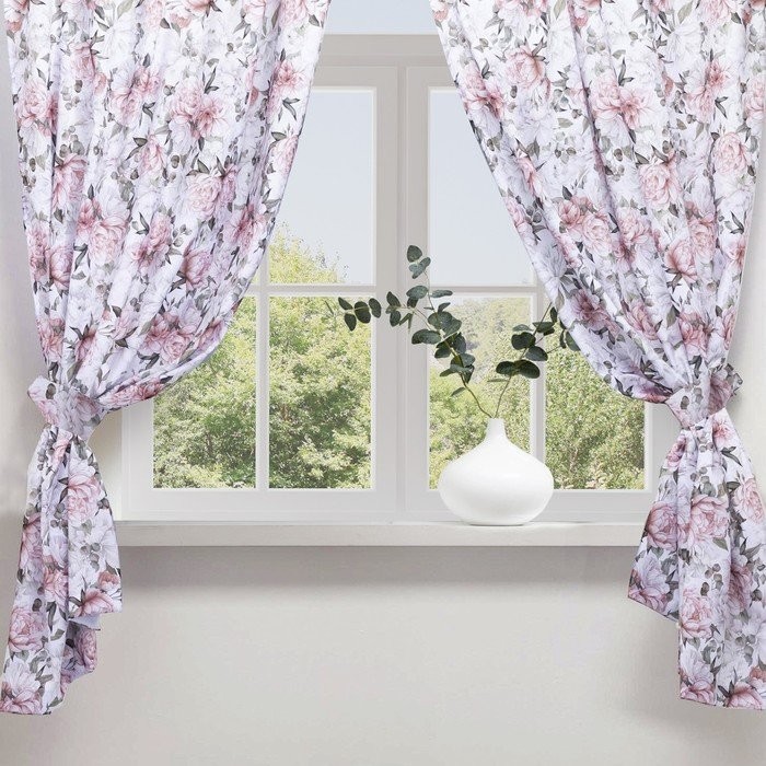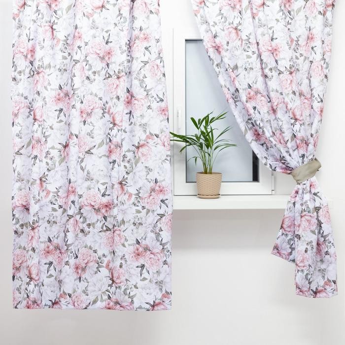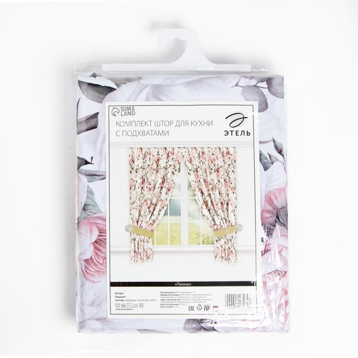 Комплект штор для кухни с подхватами Этель «Пионы» 145х180см-2 шт., 100% п/э