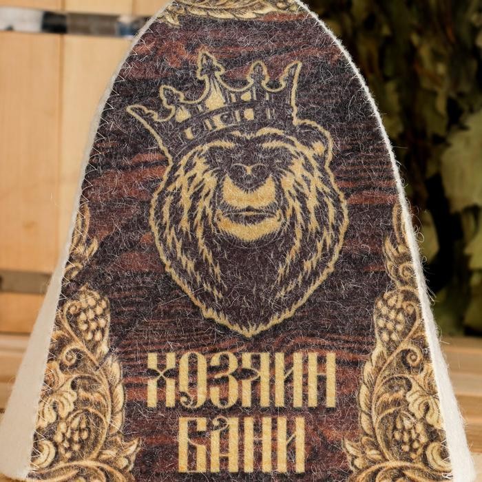 Шапка для бани «Классическая» с термопечатью «Хозяин бани (медведь)»