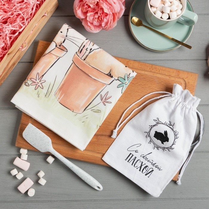 В набор входит кухонное полотенце 40 × 73 см и силиконовая лопатка.