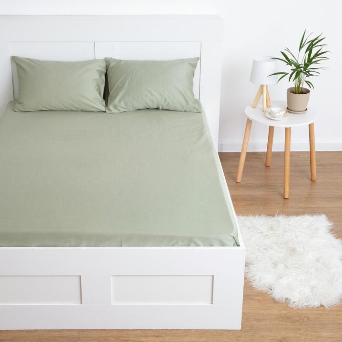 Простыня на резинке Этель 200*220*25 см, цв.оливковый, 100% хлопок, мако-сатин, 125 г/м²