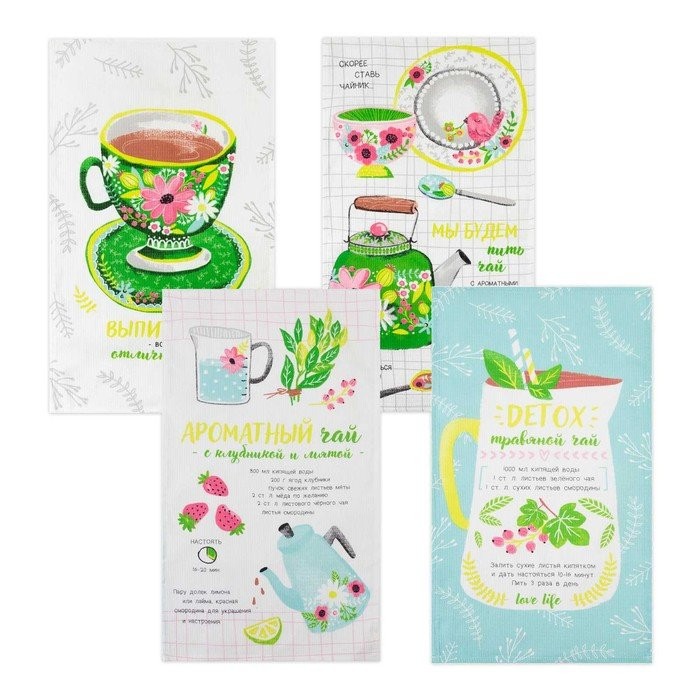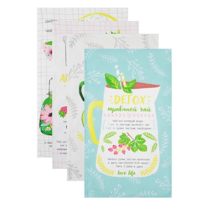 Набор кухонных полотенец Доляна «Ароматный чай», 35х60см-4 шт, 100% хл, вафля 160 г/м2